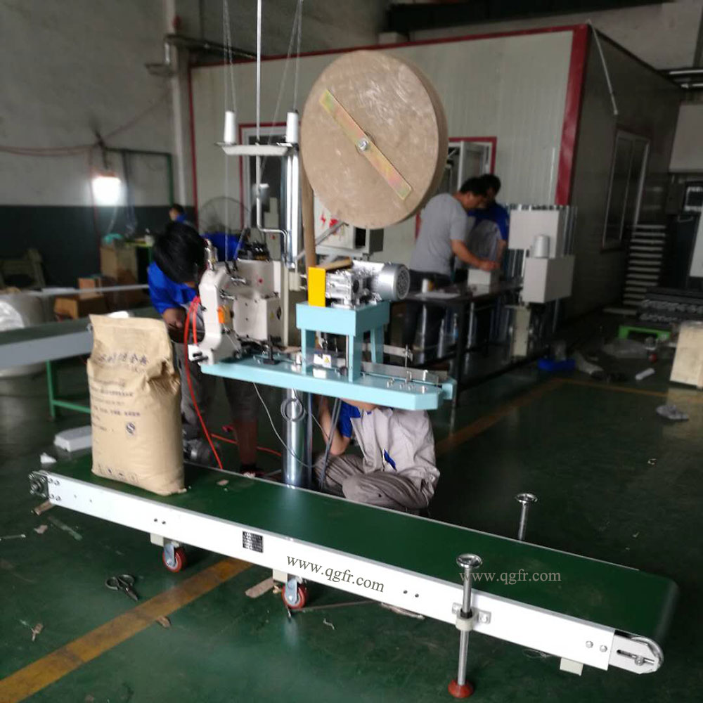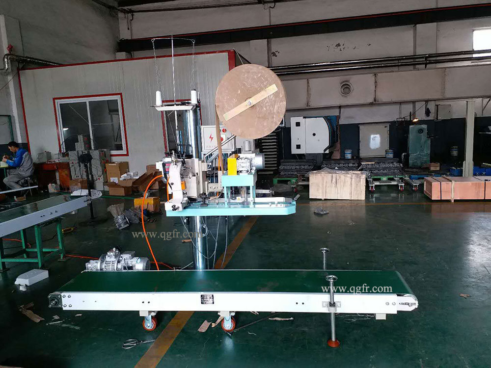 You can make up a complete set as you like for example LFS2500+(QG4900-3)+(GK35-6A) which is constituted by a 2.5m conveyor, GK35-6A sewing head, QG4900-3 bags infeed and trimming device, a column and its control box.