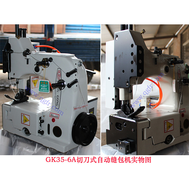 GK35-6A Automatic Bag Closing Machine: Automatic single needle machine for both plain and crepe-tape bound closing of all kinds of filled bags. The machine will start automatically by photoswitch actuated by the bag being fed into the machine. In the same way, the machine stops after the bag passes through, and at the same time the thread/crepe-tape is cut automatically by built-in air cylinder operated guillotine type cutter.