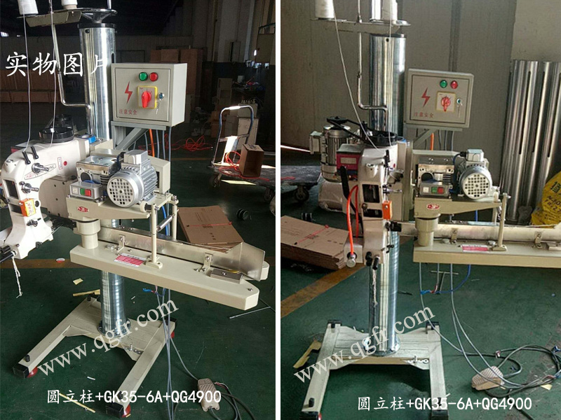圓立柱+DS-9C+QG4900-3:只送袋不折邊、高速縫合,配備包紙帶裝置后可包紙帶后縫合。