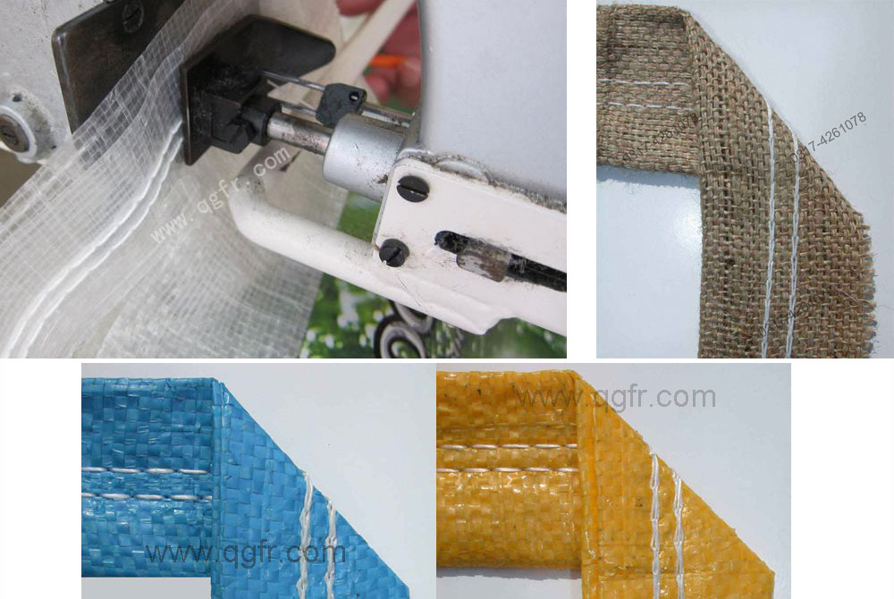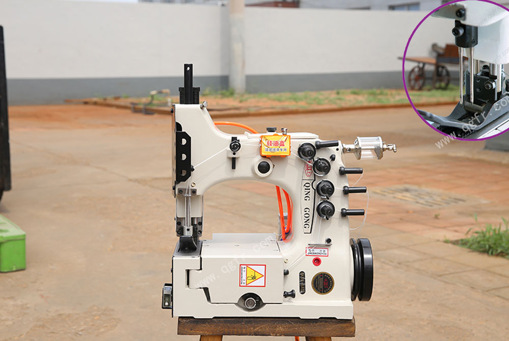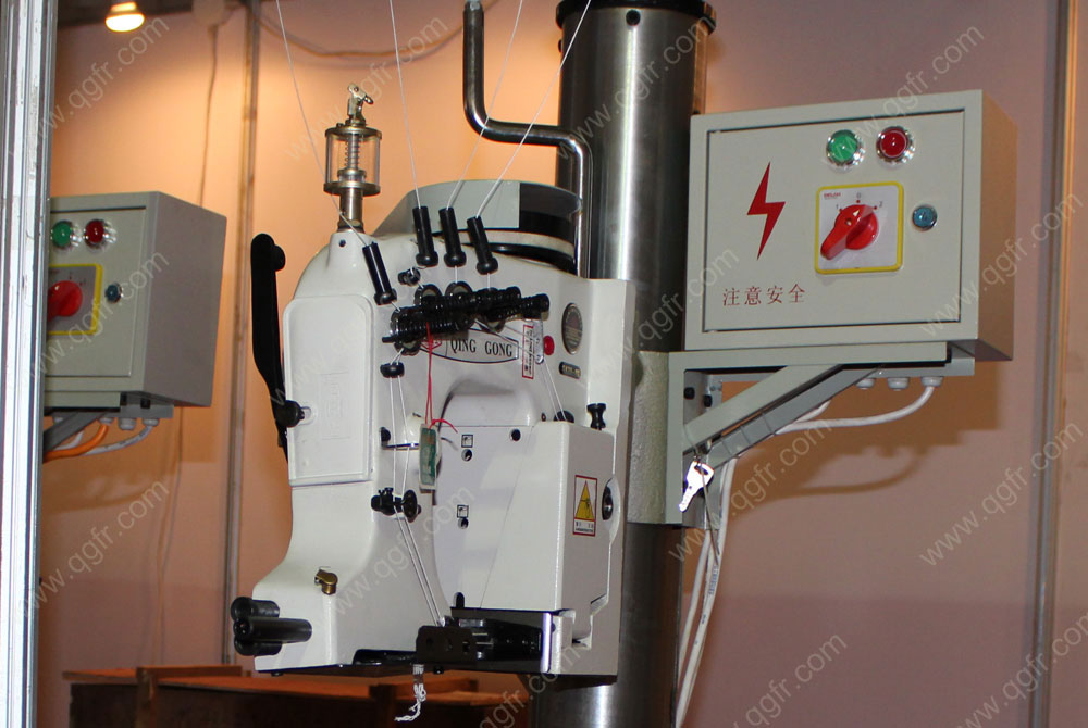 工作過程:裝配在輸送機(jī)上,當(dāng)裝滿物料的編織袋到達(dá)離縫包機(jī)10厘米處,在光控開關(guān)控制下縫包機(jī)自動(dòng)啟動(dòng),縫合袋口,縫好每一袋時(shí),切刀自動(dòng)剪斷線辮,縫包機(jī)自動(dòng)停機(jī)。