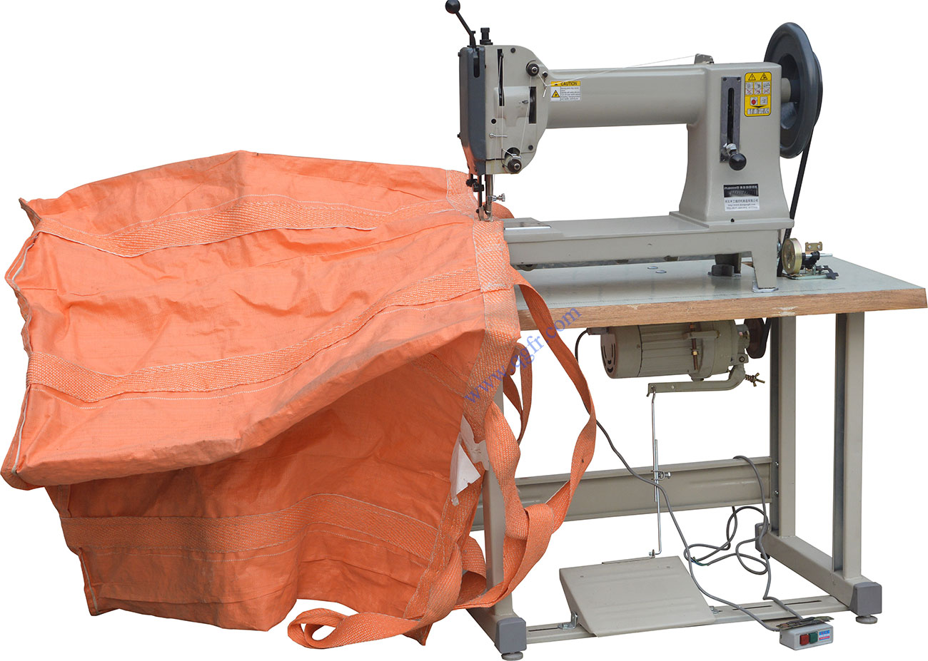FGB6800集裝袋縫紉機(jī): FGB6800集裝袋縫紉機(jī),采用單直機(jī)針、擺梭勾線、上下復(fù)合送料、腳踏回縫,構(gòu)成雙線鎖式線跡。本機(jī)器采用特殊的上送料機(jī)構(gòu)和壓腳交叉提升機(jī)構(gòu),除具有一般工業(yè)縫紉機(jī)的各項(xiàng)性能之外,其優(yōu)點(diǎn)是對各種集裝布、吊帶等縫料和潛移性較大的中厚料,在縫紉過程中能使上層和下層送料量達(dá)到一致,在高低重疊縫紉和爬坡縫紉時送料可靠、針距穩(wěn)定、線跡平整而美觀,性能穩(wěn)定、操作省力。同時還可以按集裝袋工藝的特殊要求進(jìn)行調(diào)節(jié),正縫、倒縫、打橫針操作簡單方便??煽p制加防塵條的包裝制品(查看實(shí)物圖)。