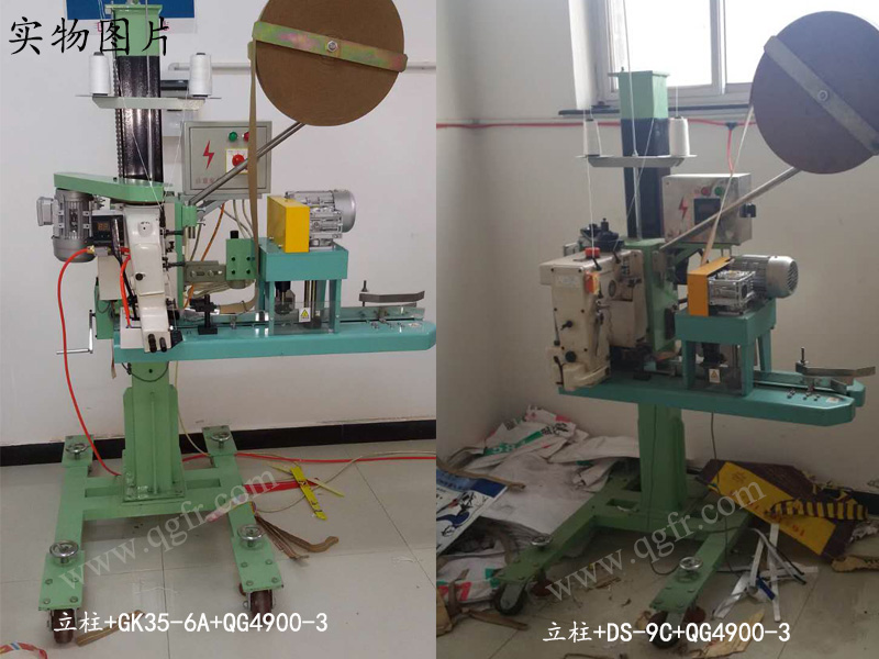 基本組合形式及功能: 立柱+GK35-6A+QG4900-3:送袋、修剪袋口、包紙帶、縫合。 立柱+DS-9C+QG4900-3:送袋、修剪袋口、包紙帶、高速縫合縫合。 立柱+GK35-6A+QG4900-3:送袋、修剪袋口、包紙帶、縫合。適用于厚料、覆膜編織袋、紙塑復合袋。